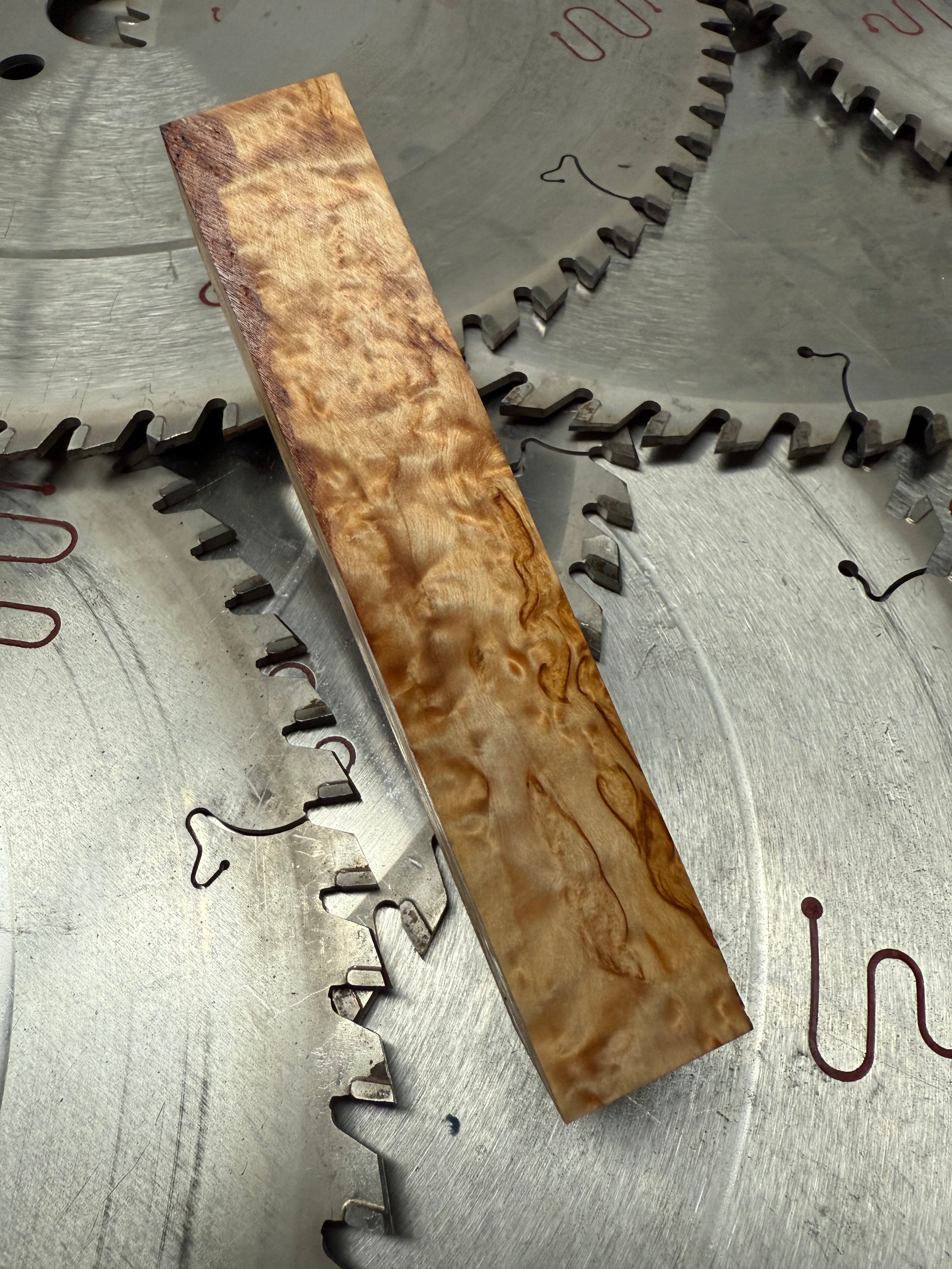 A beautiful piece of Maple Burl nicely figured that will make a great set of scales or anything else that might require an interesting piece of wood. This piece represents a great size as you can see below.