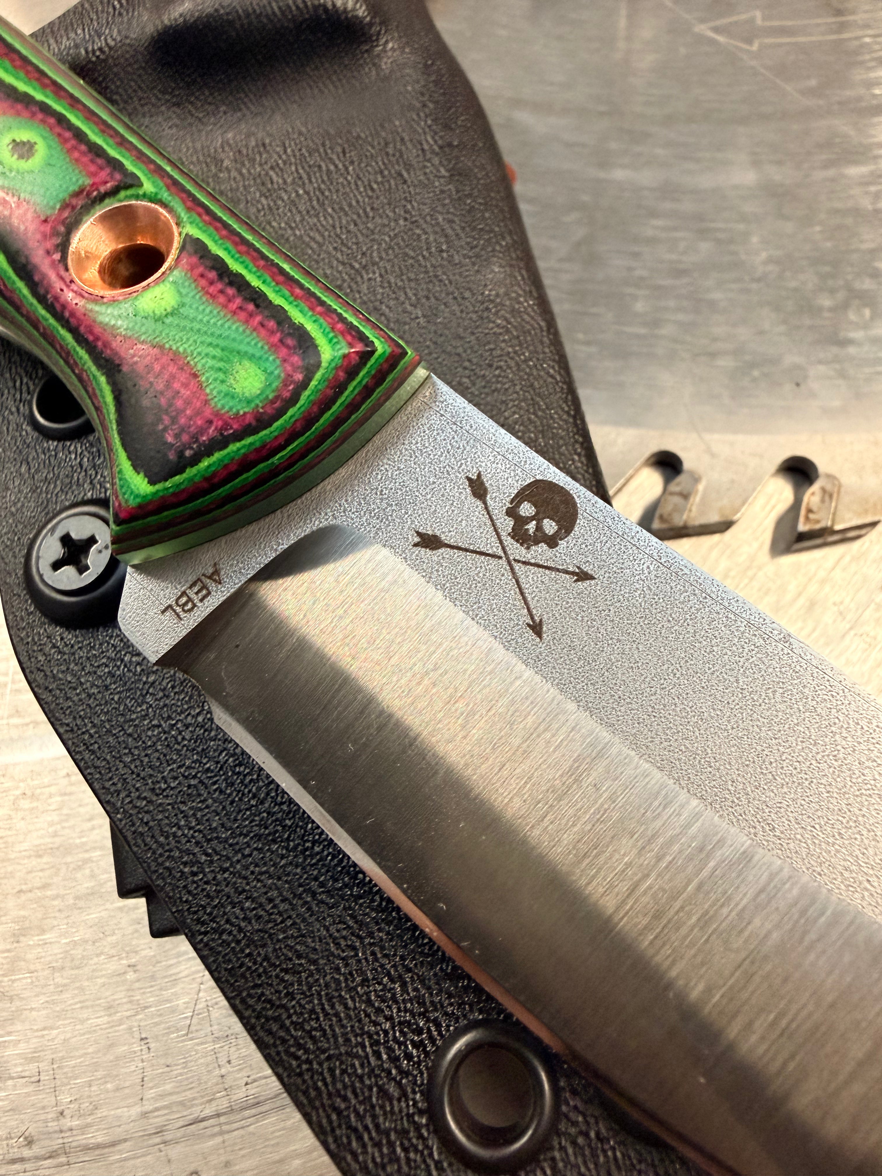 We’ve laser tattooed our skull and arrows logo on to the blade face and left the spine empty so we can laser tattoo your own message, quote or words for a loved one, simply let us know your needs and we will laser this for free.
